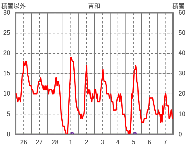 | 日 | 時 | 気温 | 降水 | 風向/風速 | 日照 | 積雪 | 降雪 |