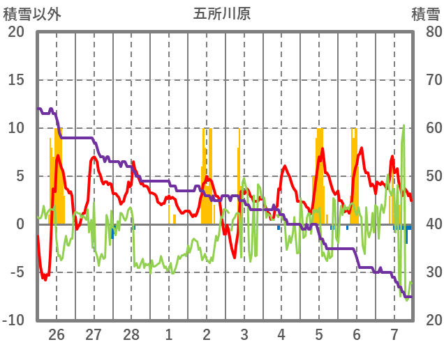 | 日 | 時 | 気温 | 降水 | 風向/風速 | 日照 | 積雪 | 降雪 |