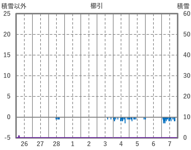 | 日 | 時 | 気温 | 降水 | 風向/風速 | 日照 | 積雪 | 降雪 |
