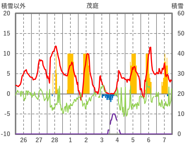 | 日 | 時 | 気温 | 降水 | 風向/風速 | 日照 | 積雪 | 降雪 |