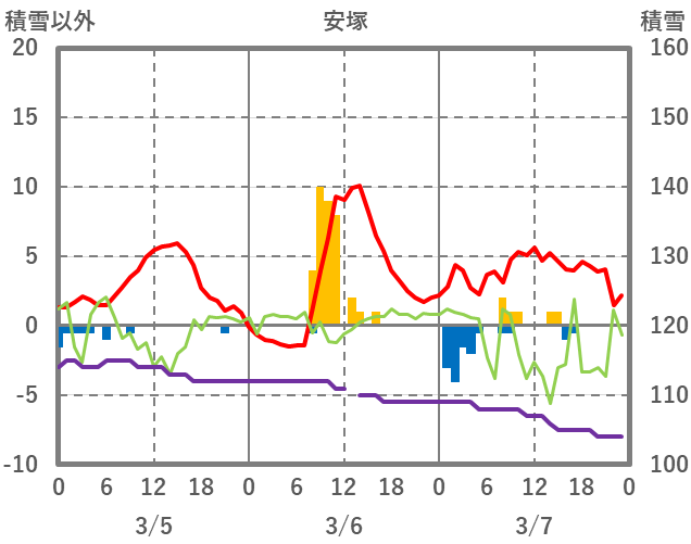 | 日 | 時 | 気温 | 降水 | 風向/風速 | 日照 | 積雪 | 降雪 |