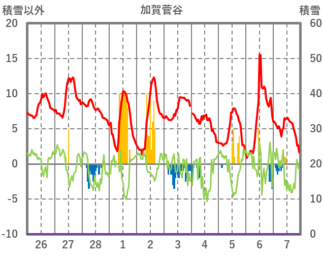 | 日 | 時 | 気温 | 降水 | 風向/風速 | 日照 | 積雪 | 降雪 |