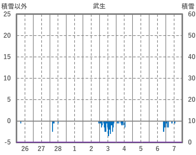 | 日 | 時 | 気温 | 降水 | 風向/風速 | 日照 | 積雪 | 降雪 |