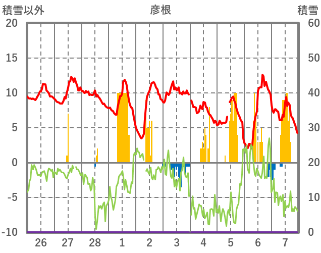 | 日 | 時 | 気温 | 降水 | 風向/風速 | 日照 | 積雪 | 降雪 |