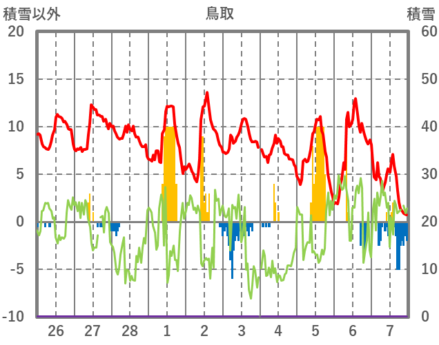 | 日 | 時 | 気温 | 降水 | 風向/風速 | 日照 | 積雪 | 降雪 |