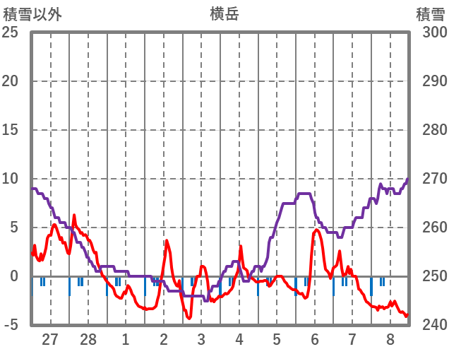 | 日 | 時 | 気温 | 降水 | 風向/風速 | 日照 | 積雪 | 降雪 |