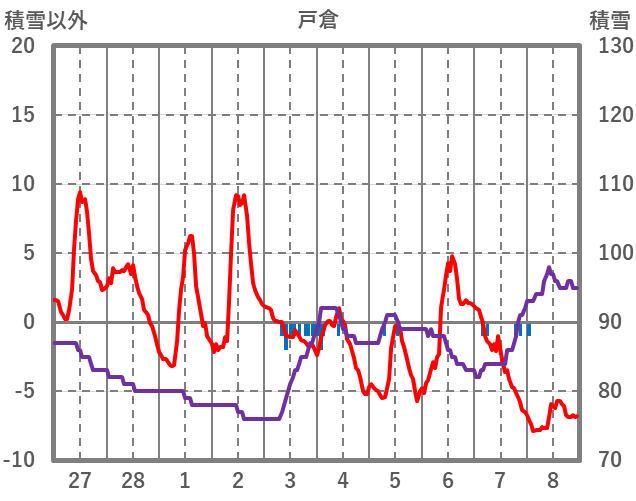 | 日 | 時 | 気温 | 降水 | 風向/風速 | 日照 | 積雪 | 降雪 |