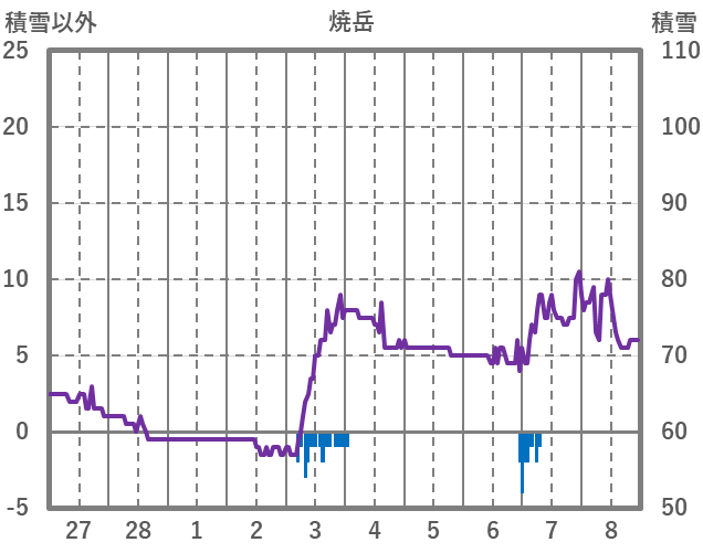 | 日 | 時 | 気温 | 降水 | 風向/風速 | 日照 | 積雪 | 降雪 |