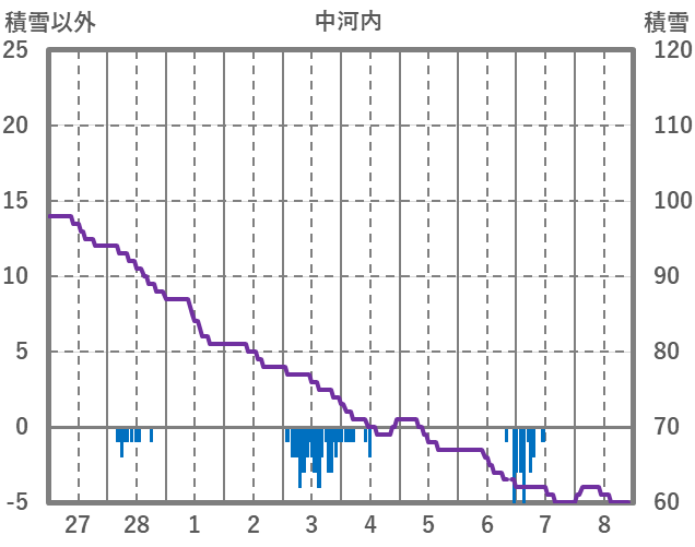 | 日 | 時 | 気温 | 降水 | 風向/風速 | 日照 | 積雪 | 降雪 |