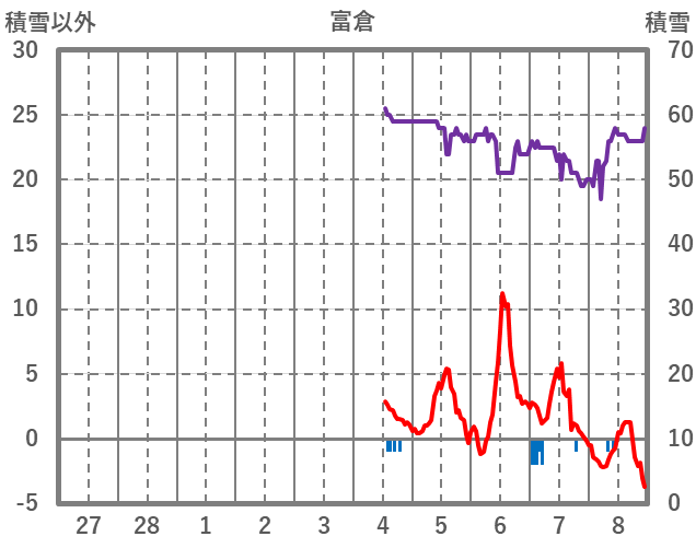 | 日 | 時 | 気温 | 降水 | 風向/風速 | 日照 | 積雪 | 降雪 |