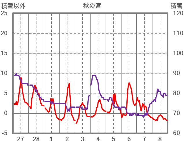 | 日 | 時 | 気温 | 降水 | 風向/風速 | 日照 | 積雪 | 降雪 |