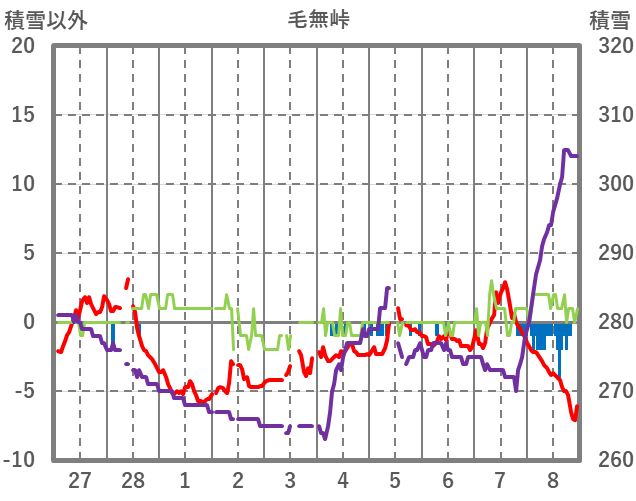 | 日 | 時 | 気温 | 降水 | 風向/風速 | 日照 | 積雪 | 降雪 |