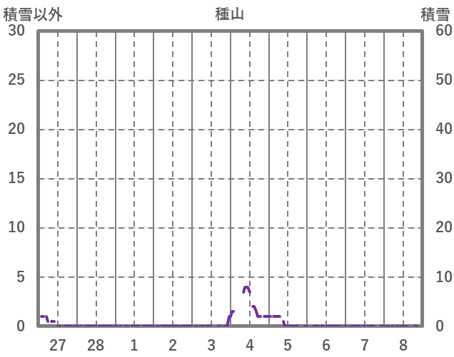 | 日 | 時 | 気温 | 降水 | 風向/風速 | 日照 | 積雪 | 降雪 |