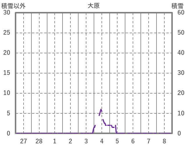 | 日 | 時 | 気温 | 降水 | 風向/風速 | 日照 | 積雪 | 降雪 |