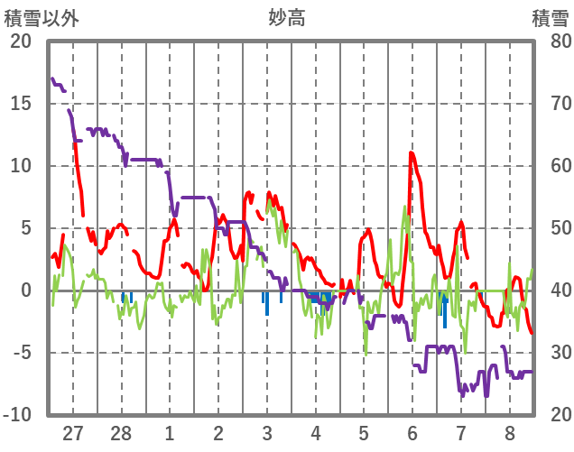 | 日 | 時 | 気温 | 降水 | 風向/風速 | 日照 | 積雪 | 降雪 |