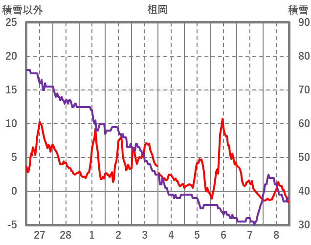 | 日 | 時 | 気温 | 降水 | 風向/風速 | 日照 | 積雪 | 降雪 |