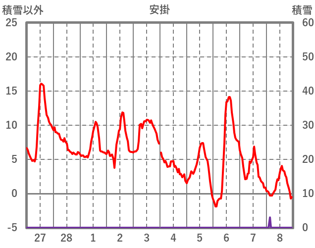 | 日 | 時 | 気温 | 降水 | 風向/風速 | 日照 | 積雪 | 降雪 |