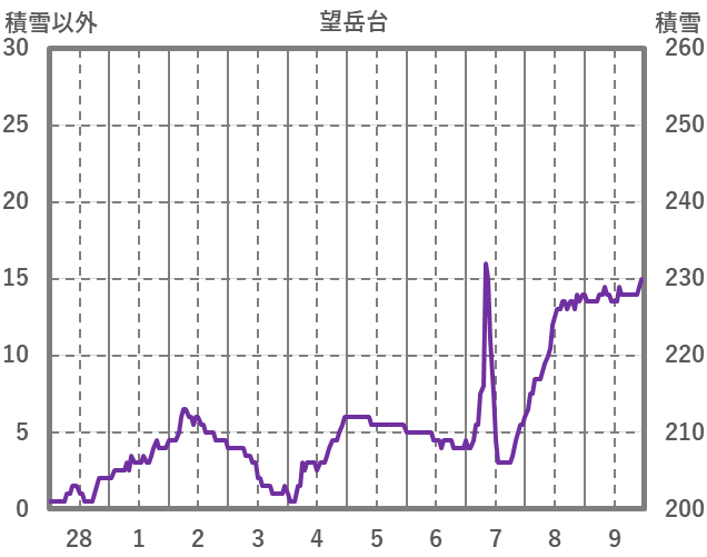 | 日 | 時 | 気温 | 降水 | 風向/風速 | 日照 | 積雪 | 降雪 |