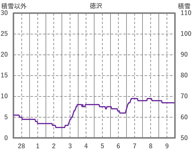 | 日 | 時 | 気温 | 降水 | 風向/風速 | 日照 | 積雪 | 降雪 |