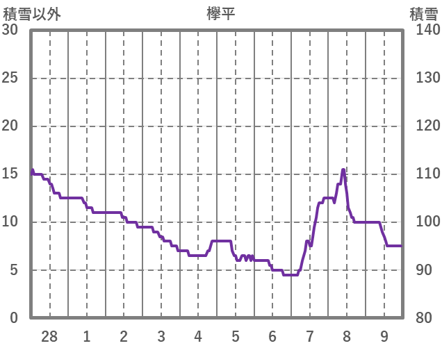 | 日 | 時 | 気温 | 降水 | 風向/風速 | 日照 | 積雪 | 降雪 |
