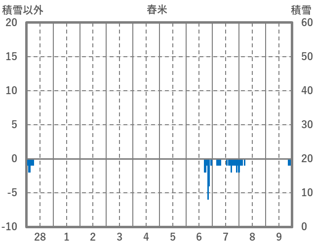 | 日 | 時 | 気温 | 降水 | 風向/風速 | 日照 | 積雪 | 降雪 |