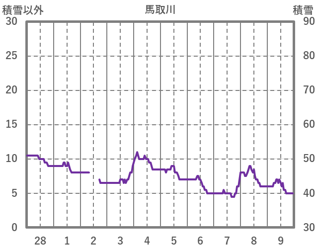| 日 | 時 | 気温 | 降水 | 風向/風速 | 日照 | 積雪 | 降雪 |