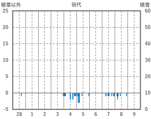 | 日 | 時 | 気温 | 降水 | 風向/風速 | 日照 | 積雪 | 降雪 |