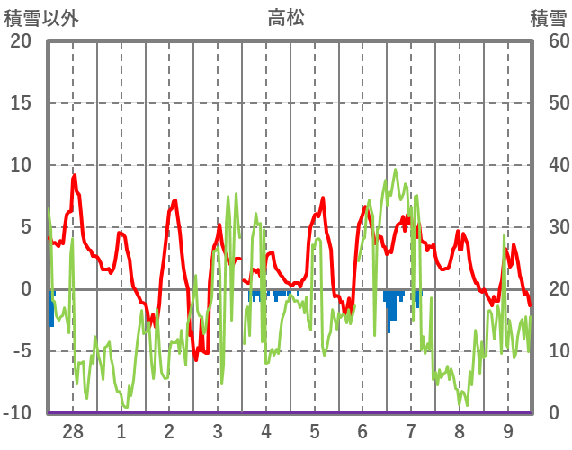 | 日 | 時 | 気温 | 降水 | 風向/風速 | 日照 | 積雪 | 降雪 |
