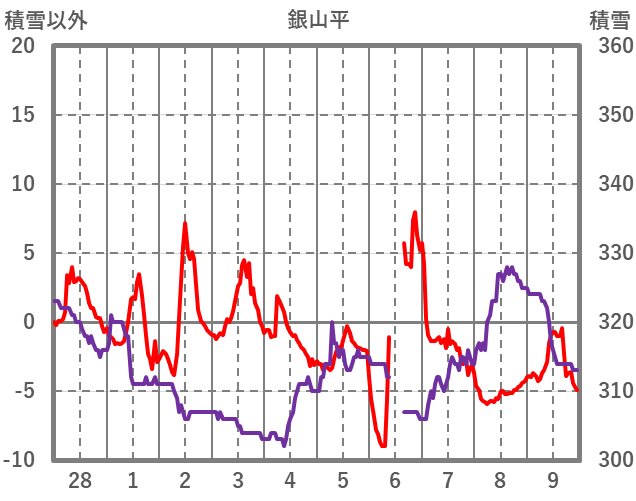 | 日 | 時 | 気温 | 降水 | 風向/風速 | 日照 | 積雪 | 降雪 |