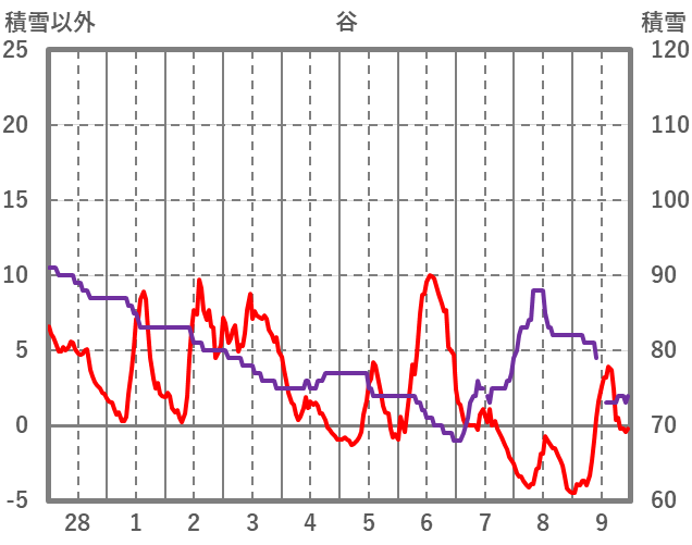 | 日 | 時 | 気温 | 降水 | 風向/風速 | 日照 | 積雪 | 降雪 |