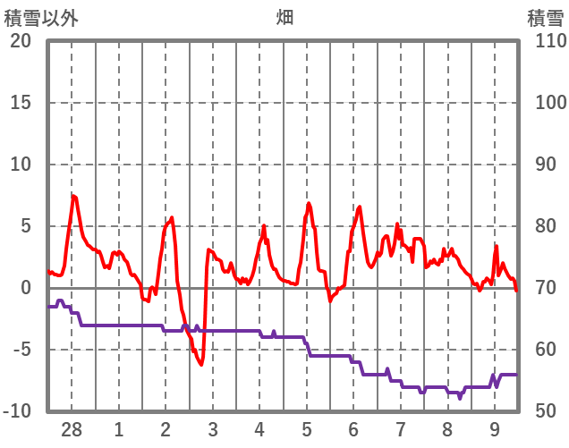 | 日 | 時 | 気温 | 降水 | 風向/風速 | 日照 | 積雪 | 降雪 |