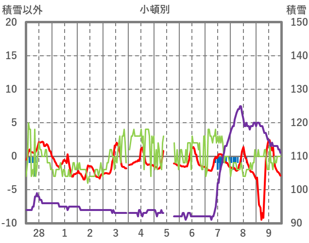 | 日 | 時 | 気温 | 降水 | 風向/風速 | 日照 | 積雪 | 降雪 |