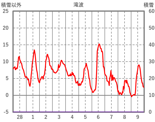 | 日 | 時 | 気温 | 降水 | 風向/風速 | 日照 | 積雪 | 降雪 |