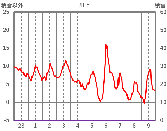 | 日 | 時 | 気温 | 降水 | 風向/風速 | 日照 | 積雪 | 降雪 |