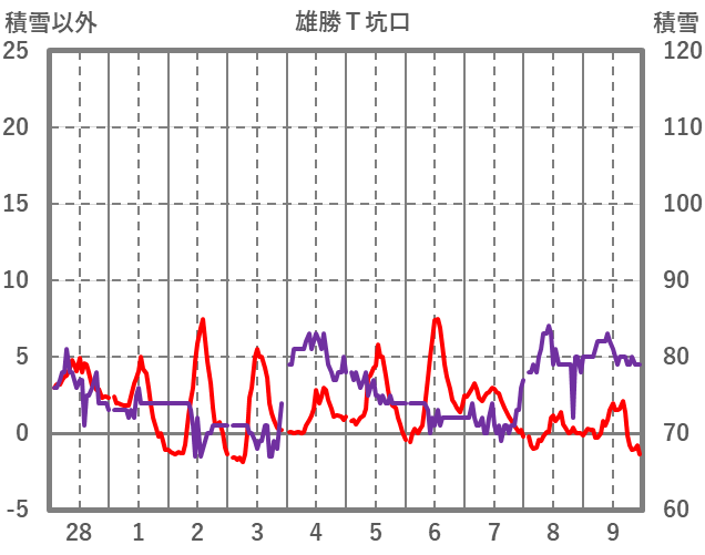 | 日 | 時 | 気温 | 降水 | 風向/風速 | 日照 | 積雪 | 降雪 |