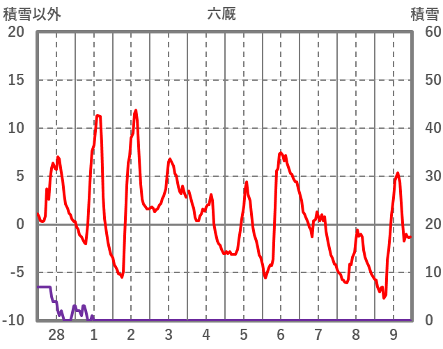 | 日 | 時 | 気温 | 降水 | 風向/風速 | 日照 | 積雪 | 降雪 |