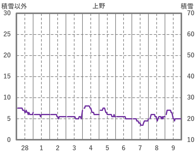| 日 | 時 | 気温 | 降水 | 風向/風速 | 日照 | 積雪 | 降雪 |