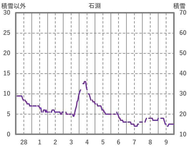 | 日 | 時 | 気温 | 降水 | 風向/風速 | 日照 | 積雪 | 降雪 |