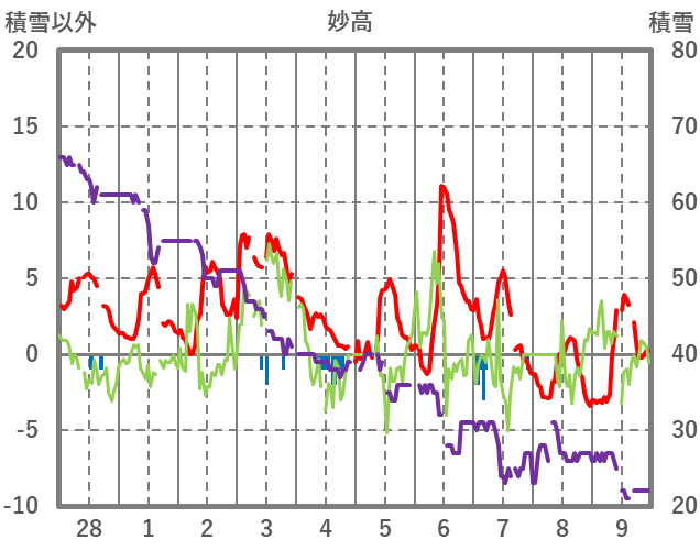 | 日 | 時 | 気温 | 降水 | 風向/風速 | 日照 | 積雪 | 降雪 |