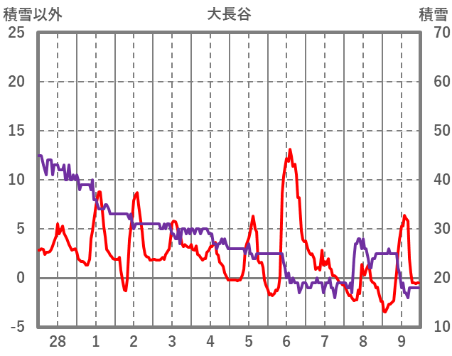 | 日 | 時 | 気温 | 降水 | 風向/風速 | 日照 | 積雪 | 降雪 |