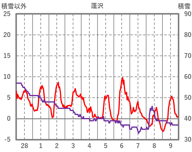 | 日 | 時 | 気温 | 降水 | 風向/風速 | 日照 | 積雪 | 降雪 |