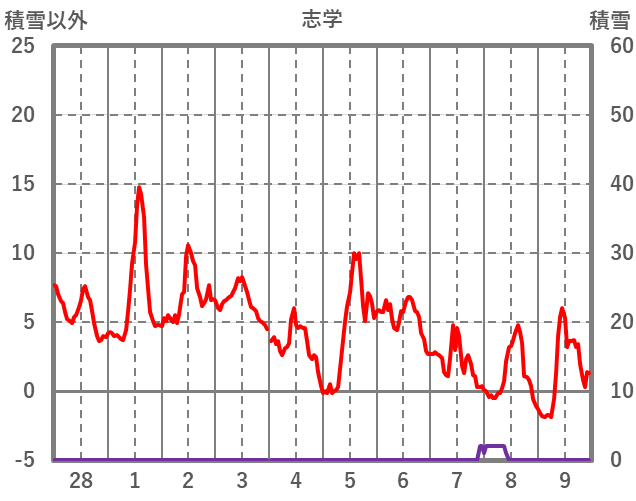 | 日 | 時 | 気温 | 降水 | 風向/風速 | 日照 | 積雪 | 降雪 |