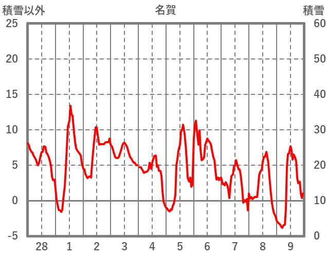 | 日 | 時 | 気温 | 降水 | 風向/風速 | 日照 | 積雪 | 降雪 |