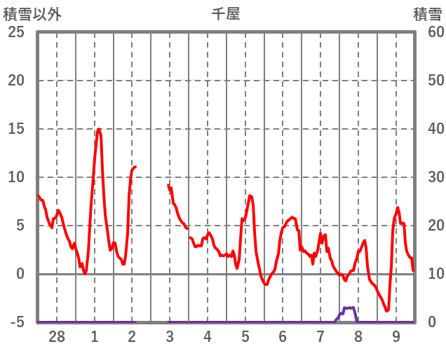| 日 | 時 | 気温 | 降水 | 風向/風速 | 日照 | 積雪 | 降雪 |