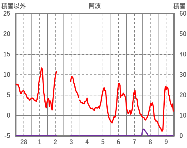 | 日 | 時 | 気温 | 降水 | 風向/風速 | 日照 | 積雪 | 降雪 |