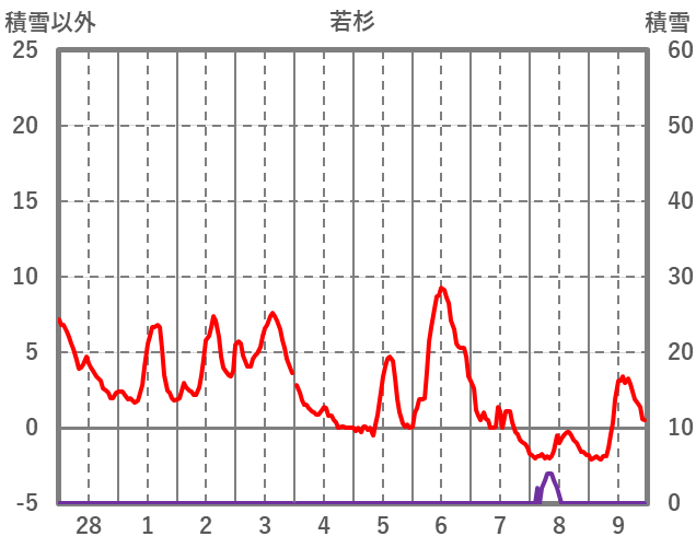 | 日 | 時 | 気温 | 降水 | 風向/風速 | 日照 | 積雪 | 降雪 |