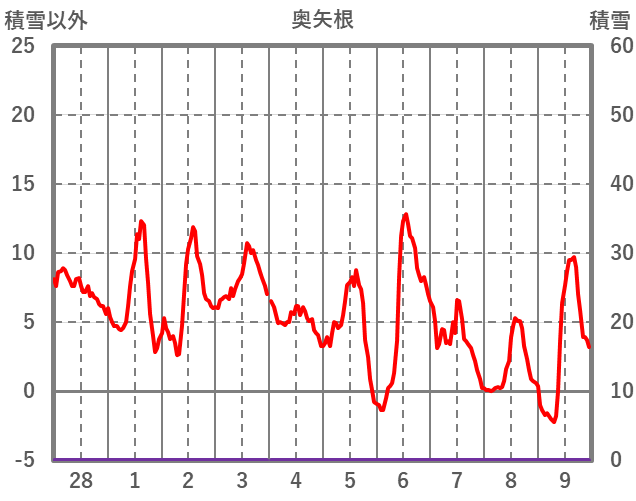 | 日 | 時 | 気温 | 降水 | 風向/風速 | 日照 | 積雪 | 降雪 |