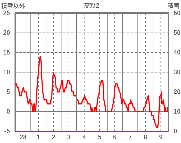 | 日 | 時 | 気温 | 降水 | 風向/風速 | 日照 | 積雪 | 降雪 |