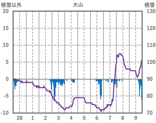 | 日 | 時 | 気温 | 降水 | 風向/風速 | 日照 | 積雪 | 降雪 |