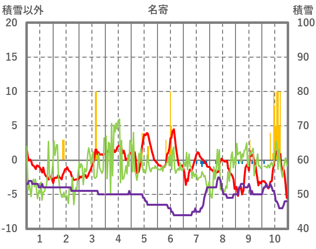 | 日 | 時 | 気温 | 降水 | 風向/風速 | 日照 | 積雪 | 降雪 |
